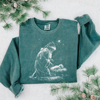 Design is on a comfort colors sweatshirt in blue spruce.